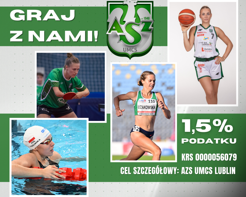 Zachęcamy do rozliczenia swojego PIT-u razem z AZS UMCS Lublin. Wasze wsparcie pomaga nam dalej rozwijać klub oraz pisać kolejne rozdziały historii jego funkcjonowania. Dlaczego warto oddać nam 1,5% podatku? Przekazane środki trafiają na realizację celów statutowych. To właśnie dzięki 1,5% podatku możliwy jest dodatkowy rozwój zarówno sekcji młodzieżowych, jak i zespołów wyczynowych, które na […]