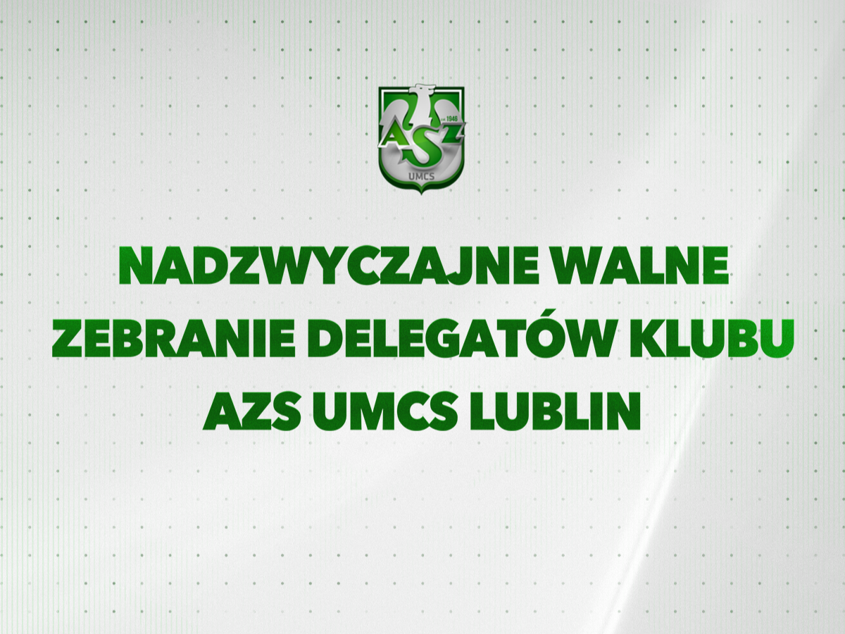 Zarząd Klubu Uczelnianego AZS UMCS Lublin informuje, iż w dniu 26 lutego 2026 r. o godzinie 17:30 na Wydziale Prawa i Administracji UMCS, pl. Marii Curie-Skłodowskiej 5 (Aula A) odbędzie się Nadzwyczajne Walne Zebranie Delegatów Klubu Uczelnianego AZS UMCS Lublin, które ma na celu wybranie nowego Prezesa Zarządu Klubu AZS UMCS.