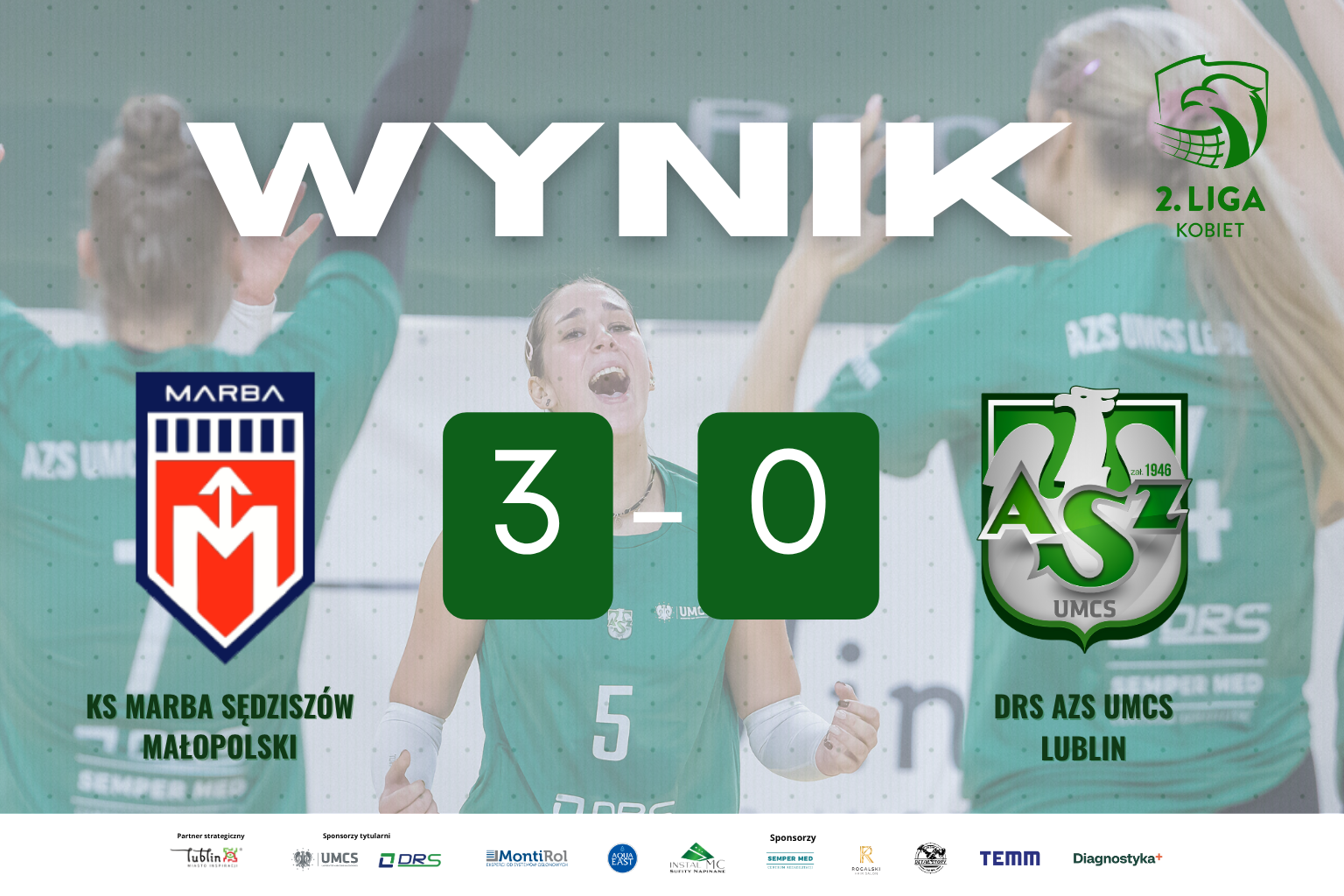 Nie udało się przedłużyć zwycięskiej serii DRS AZS UMCS Lublin. W wyjazdowym spotkaniu 3. kolejki II Ligi Kobiet siatkarki z Lublina przegrały z doświadczonym zespołem KS Marba Sędziszów Małopolski 0:3 (19:25, 21:25, 15:25).