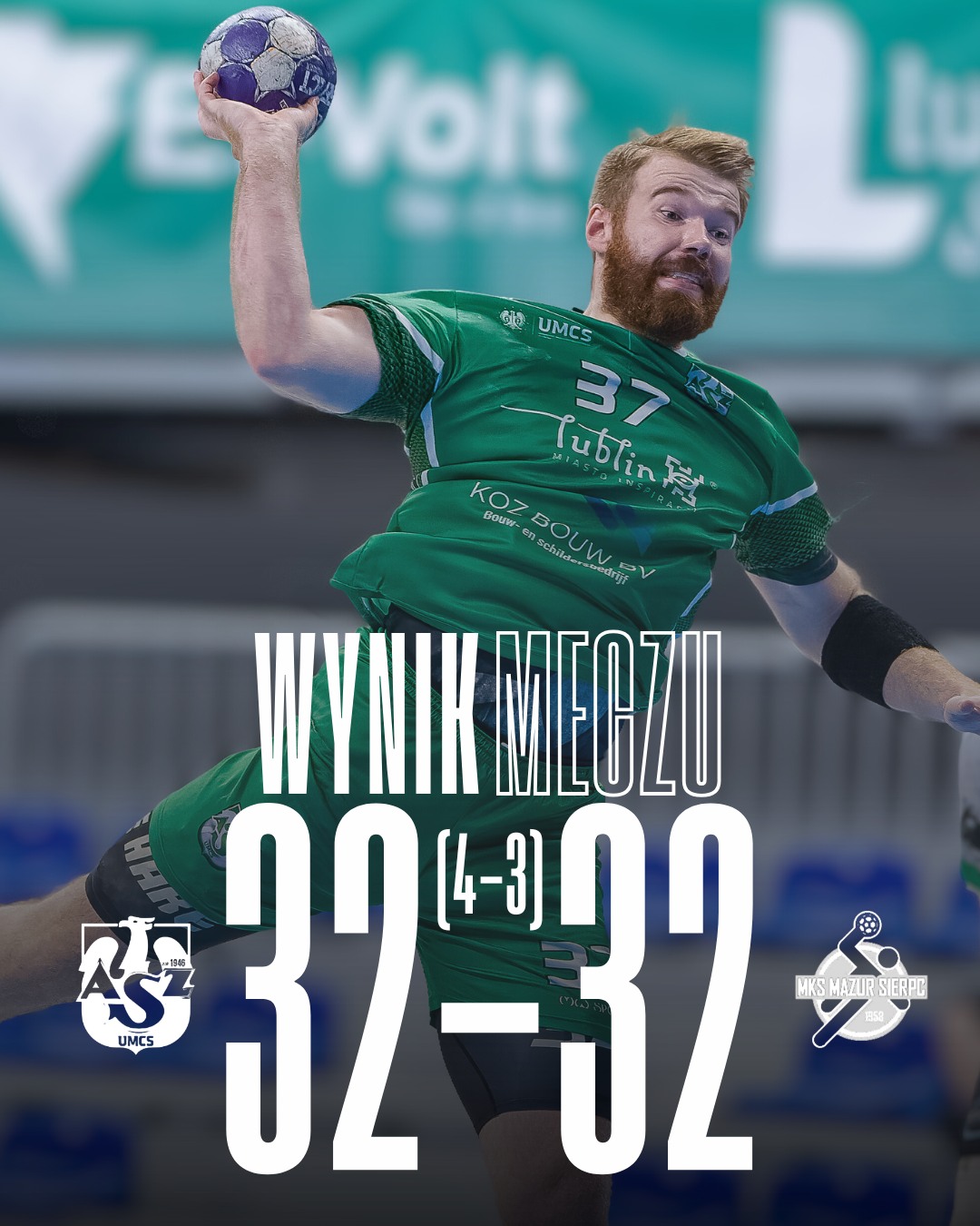 Po zmianie stron goście z Sierpca podkręcili tempo, powiększając różnicę do pięciu bramek (18:23). Wydawało się, że od tego momentu goście z Sierpca będą powiększać swoją przewagę i udowadniać swoją wyższość. Wtedy właśnie, Akademicy z Lublina pokazali charakter. Rozpoczęli efektowny pościg, szybko niwelując straty i doprowadzając do stanu 25:26.Prawdziwy dreszczowiec czekał jednak na kibiców w końcówce. Kiedy na tablicy wyświetlała wynik 29:32 dla przyjezdnych, wydawało się, że piąta porażka z rzędu stanie się faktem, gospodarze rzucili się do ataku.W ekspresowym tempie odrobili trzy gole, doprowadzając do heroicznego remisu 32:32, co wymusiło rozstrzygnięcie z linii siedmiu metrów. W decydującej serii rzutów karnych lepsi okazali się zawodnicy AZS UMCS, triumfując ostatecznie 36:35. Nasi szczypiorniści pokazali w tym meczu co oznacza w sporcie walka do samego końca i determinacja!